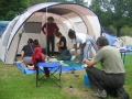 |  Simon et sa boule magique. |  Le dernier soir, froid, on mange sous l'auvent, |  Mais les autres jours : repas sur l'herbe ! |