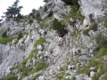 Des nuages épais montent. |  Passages pentus bien équipés. |  En haut c'est très beau. |  Juste sous le sommet, un coin de ciel bleu. |