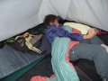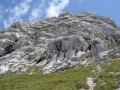 Le soir, essai d'agrandissement du logement. Esthétiquement, c'est pas une réussite. |  Mercredi, départ vers le Petit Som depuis Le Habert. |  On repasse par le col de la Ruchère, mais cette fois-ci par le versant nord. |  Au-dessus du pas du Loup, et avant le col de Léchaud. |