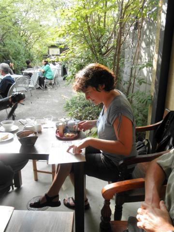 Pause thé. Aurélie suit à la lettre le mode de préparation du thé (il y a au moins cinq phases à suivre rigoureusement).