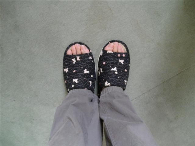 Pantoufles de couloir, qu'on met dès l'entrée de la maison.