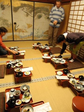 Dîner à Ekô-in, chaque groupe de pélerins a sa pièce à manger.