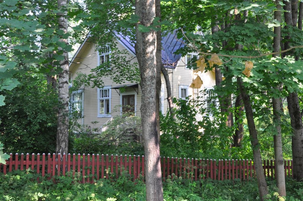 Et de temps en temps, caché par la végétation, de belles maisons anciennes en bois.