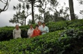En face de notre gîte. Le premier jour il ne pleut pas beaucoup. |  Chaque jour les cueilleuses de thé sont dans les jardins. Elles coupent les premières feuilles tous les dix jours. Les arbustes sont taillés tous les cinq ans. |  |  Dans le coin, il y a pas mal d'animaux sauvages ; on a la chance d'apercevoir un éléphant, en lisière de forêt. |