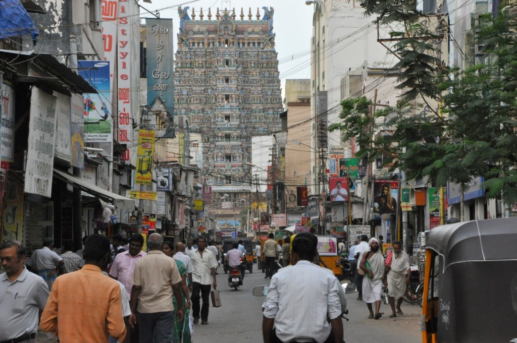 Changement d'atmosphère, après être arrivé, en train, à Madurai.