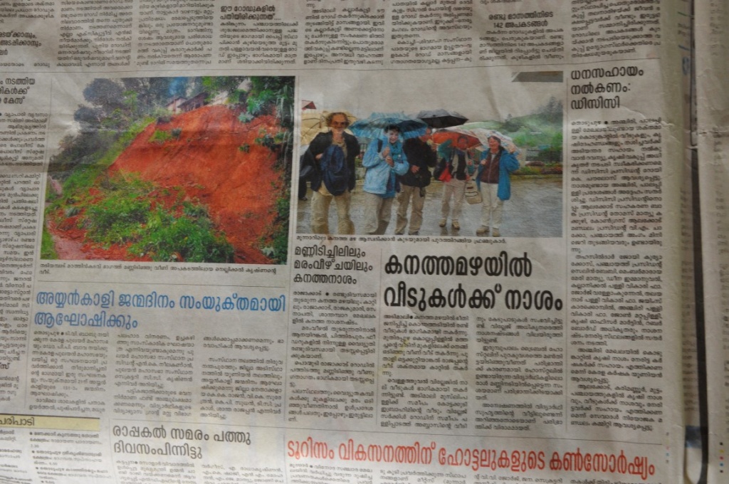 On figure même dans le journal du Kerala : les intrépides touristes français qui bravent la mousson !