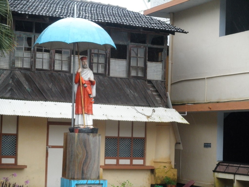 Fort Kochi, partie la plus ancienne de Cochin, sur l'Océan indien. Même les saints doivent se protéger des averses de mousson. Quand cela tombe, c'est comme des seaux d'eau versés.
