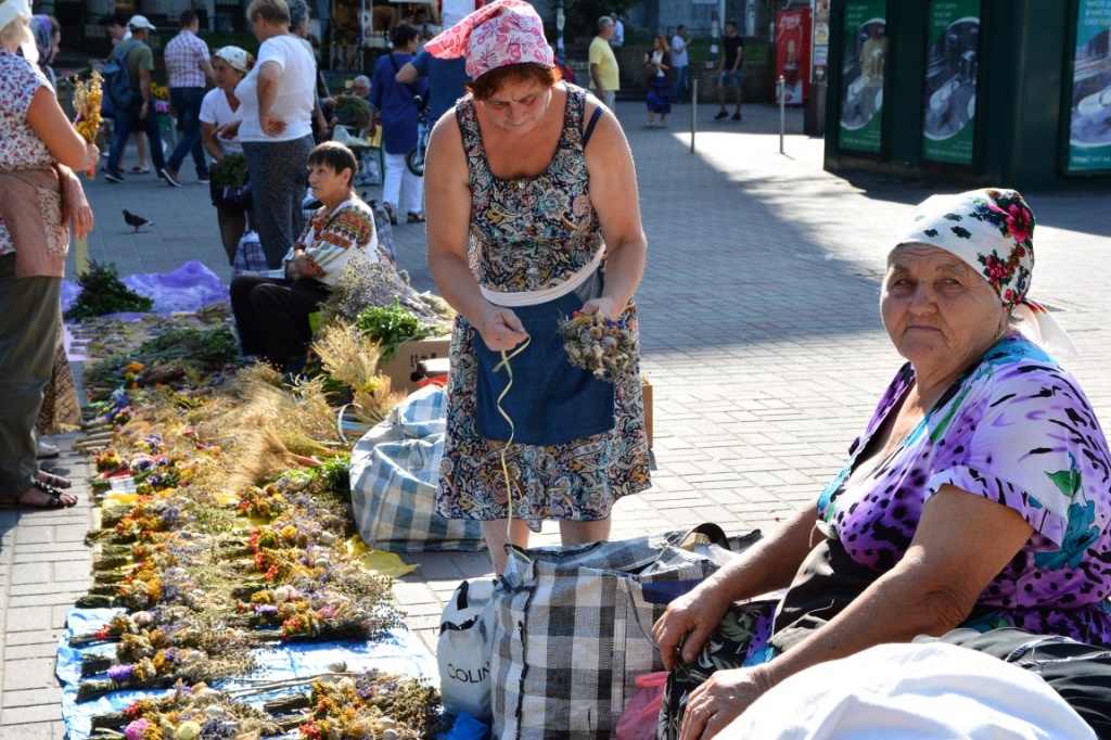 En s'approchant de la laure Peterchska, on achète des petits bouquets-offrandes.