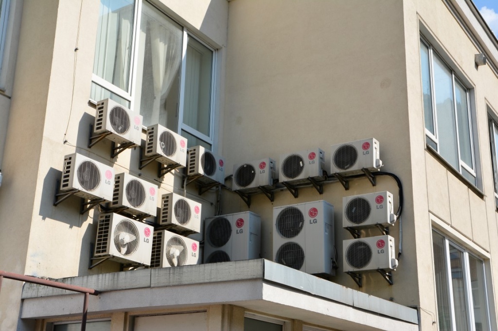 Dans ces immeubles modernes, on n'hésite pas sur les clims.