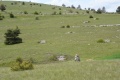 C'est loin d'être désertique, cultures et fermes sont nombreuses. |  Première nuit au Mas St Chely. Nous sommes assis dans le jardin de l'hôtel (un pré, plutôt), et un vautour fauve vient voir si nous sommes comestibles. Il fait 2 - 3 tours puis repart.