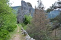 On remonte la petite vallée du Bonheur (le nom de la rivière). Jolie vallée aux prés fleuris. |  La Baraque vieille. |  Au fond de la vallée, les ruines de Notre Dame de Banahuc. A l'écart du chemin et sans aucune indication, nous avons eu un peu de mal à trouver ce lieu. |  Hospice pour les voyageurs, fondé en 1002, cet ensemble a fonctionné durant tout le moyen-âge. |