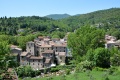 Descente vers le Vigan. |  |  Auparavant on traverse le village d'Aulas. |  Aulas, village médiéval, avec de nombreuses filatures (en ruine). |