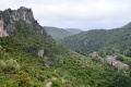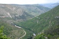 Ste Enimie, tout au fond des gorges. |  Heureusement, la forêt filtre un peu les rayons du soleil. |  Une dernière vue sur le Tarn. |  Arrivée sur le Causse Méjan, qu'on traverse du nord au sud. |