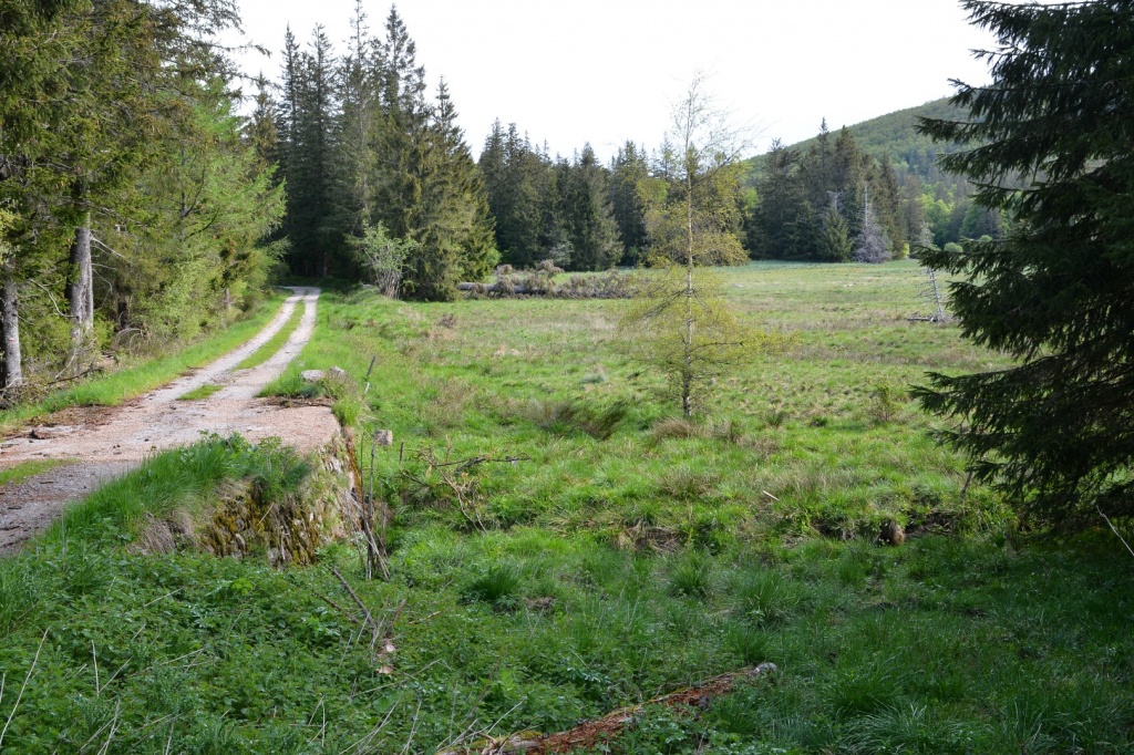Un marécage. Le calcaire a cédé la place aux roches cristallines du massif de l'Aigoual.