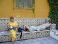 ![]() D'autres beaux jardins ; ici : dans l'Hopital de los venerables. Un hospice accueillant les vieux prêtres pour leur retraite. On aimerait presque être à leur place. | ![]() Toujours dans le même endroit. | ![]() Mais toutes ces visites, cela fatigue. | ![]() Ce n'était pas la semaine sainte, mais de temps en temps, une paroisse de quartier va faire faire un tour à sa vierge. Ca vaut le coup d'être vu, et encore vous n'entendez pas la fanfare qui suit le cortège ! Mais si vous insistez, on a acheté un CD, on peut vous le faire écouter. |