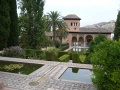 ![]() Visite de l'Alhambra. On commence par le Généralife, sorte de résidence d'été avec des jardins superbes. | ![]() Du côté almohade (c'est une des dynasties musulmanes qui ont gouverné l'Andalousie, après les almoravides et avant les nasrides). Ce sont les nasrides qui, en dernier, se sont fait battre par les rois catholiques (fin du 15ème siècle) et sont retournés en Afrique du Nord. | ![]() La ville, vue du haut des remparts de l'Alhambra. | ![]() Le joyau de l'Alhambra : les palais nasrides. |