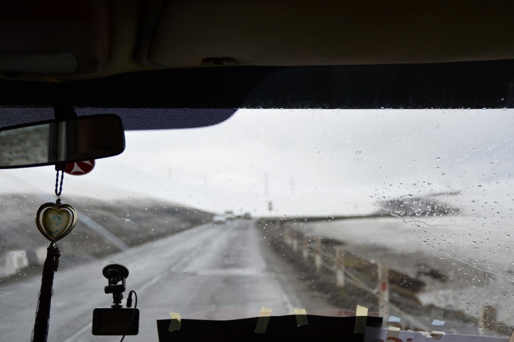 Reprise de la route, vers le sud. Avant de descendre en altitude, il faut repasser par le col de Jvari.