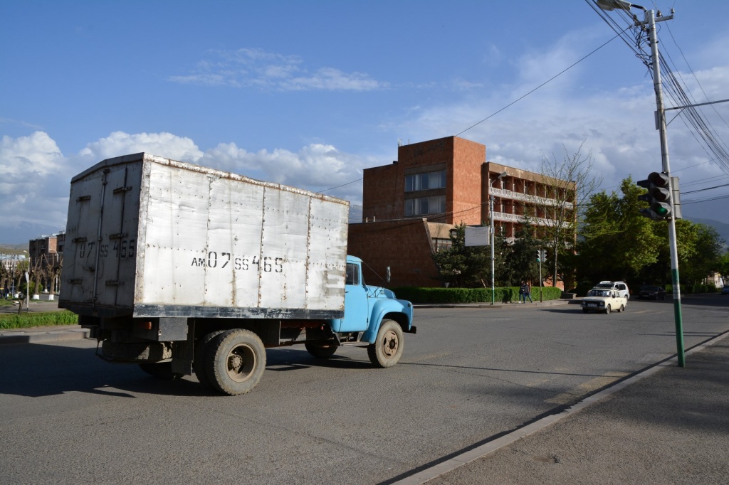 Il reste beaucoup de bâtiments de l'époque soviétique. Des camions, aussi.