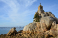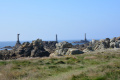 Là, on voit mieux ce rocher, reste d'un jeu de lancer entre saints, dit-on par ici. |  |  Tout à l'extrémité, le phare de la Jument. |  |
