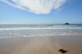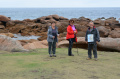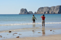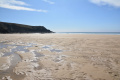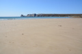 A partir de La Palue, la randonnée démarre vraiment sur l'immense plage. |  Nous sommes toujours sur le GR 34. |  Le Cap de la Chèvre, au bout. |  |