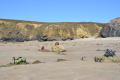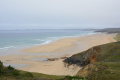Encore une belle journée ce dimanche 15 septembre. Dès le départ le sentier surplombe l'Anse de Camaret. |  Il suit exactement la côte très découpée et les trois Pointes : du Grand Goui, du Toulinguet et de Pen-Hir (avec ses Tas de Pois). |  |  Plage de l'anse de Pen Hoat. |