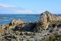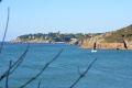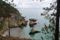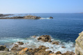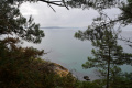 Un dernier coup d'oeil avant de retourner à Camaret et ses assiettes de fruits de mer. |  Mardi 17, dernier jour dans la presqu'île. On se gare au port de Morgat. |  Direction sud, sans aller jusqu'au Cap de la Chèvre où nous étions la veille. |  Le paysage est très différent : ambiance méditerranéenne avec pins et rochers. |