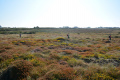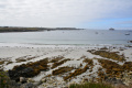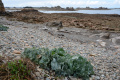 9 sept, première marche. Au nord de Pleubian, sur le sillon de Talbert, étroite dune naturelle de galets et graviers qui rentre dans la mer sur plus de 3 km. |  C'est marée basse. |  |  Une flore très spécifique des dunes bretonnes (euphorbes, renouée, chardon, chou marin poussant sur les galets). |