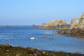 On quitte le sentier côtier pour rejoindre le point de départ. |  En passant par Keravel, ancien village de pêcheurs (il n'y a plus de pêcheurs, mais des locations de vacances). |  Retour sur le versant ouest de la presqu'île. |  On retrouve la plage de La Palue. |