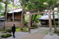 Du temple, on peut voir, au loin entre les arbres, le mont Ontake-san, volcan actif culminant à 3000m. Second volcan du Japon, en altitude, après le Fuji-san. |  |  |  |