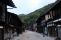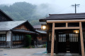 Les bâtiments ont été bien conservés ; les magasins ont d'épais murs en torchis, blanc ; les maisons sont toutes en bois. Nous avons logé dans l'une d'entre elles. |  C'était ici. Comme toutes les maisons où nous avons séjourné, les extérieurs sont d'époque, mais les intérieurs ont tout le confort moderne, même très moderne. |  |  Plusieurs petits temples sont répartis le long de la route. |