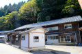 L'agglomération vient buter sur le contrefort montagneux et boisé. |  A sa lisière se trouve un vaste temple. |  |  Il s'agit d'Okamoto Shrine, dédié à la déesse du papier : Kawakami Gozen. |