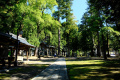 |  |  Juste en face du château, le sanctuaire Oyama. |  |