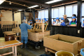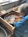 On assiste, avec des écoliers, à des démonstrations de fabrication. |  |  |  Il y a également une salle d'exposition où des artistes présentent leurs travaux. |