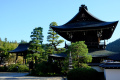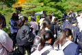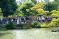 Là aussi, c'est la foule. |  |  Heureusement on trouve des points de vue sans têtes devant (parfois il faut jouer des coudes). |  Second temple, au nord-est de la ville :Jinkaku-ji. Appelé aussi Pavillon d'Argent, bien que plutôt en bois, il est très vieux (1482). |