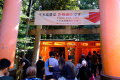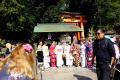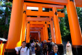 |  Jeudi 30, c'est notre dernier jour sur place, nous le consacrons à la visite du site de Fushimi-Inari. |  Fushimi-Inari est un sanctuaire datant du VIIIème siècle, dédié à Inari, divinité des récoltes. Son emblème est un renard qui porte dans sa gueule la clé des greniers à riz. |  Le sanctuaire s'étale sur plusieurs kilomètres de sentiers qui grimpent sur le flanc d'une colline boisée, au sud de la ville. |
