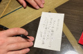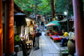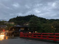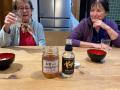 Succulent, n'est-ce pas, Vincent ? |  Autres dégustations, une fois arrivés à la maison. |  Le séjour à Takayama s'achève par une promenade, à la tombée de la nuit, dans la forêt dominant notre quartier. |  Il fait de plus en plus sombre, nous agitons vigoureusement nos clochettes. |