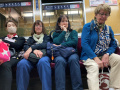 Jeudi 16 octobre au matin, nous prenons le train à la minuscule gare de Narai, pour rejoindre Takayama. |  D'abord un train local, puis un bus pour nous amener à Takayama, au cœur des montagnes de Hida dans les Alpes Japonaises. A propos des voyages (de 1 à 4 heures), nous prenions en général des trains, parfois un bus. |  Petites lignes style autorail, petites gares, grandes lignes, Shinkansen, gares énormes où il faut quasiment le GPS pour s'orienter. |  Ici, train de banlieue à Kyoto, au soir d'une journée de visites. |