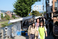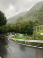 2 heures 30 de bus pour monter à Takayama (1150 m d'altitude), sous la pluie et le brouillard. |  |  Notre maison se trouve en bordure de la ville, on traverse un vieux pont et on monte sur la colline. |  Première chose à faire : les courses. |