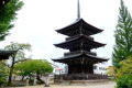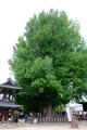 Temples nombreux, dans cette ville ; ici : Hida Kokubun-ji, pagode bouddhique du 16ème siècle, |  Dans la même cour, un immense gingko âgé, parait-il, de 1200 ans ! |  D'autres temples, l'un à la suite de l'autre, au pied d'une colline boisée, Higashiyama. |  |