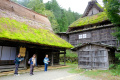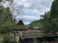Samedi 18, nous passons 4 heures au "village folklorique" de Hida-no-sato, nous dirions un écomusée, à quelques kilomètres de Takayama. |  Sur une colline, autour d'un petit lac, sont rassemblées une trentaine de maisons paysannes de la région de Hida. |  Ces bâtisses ont toutes plusieurs centaines d'années. |  |