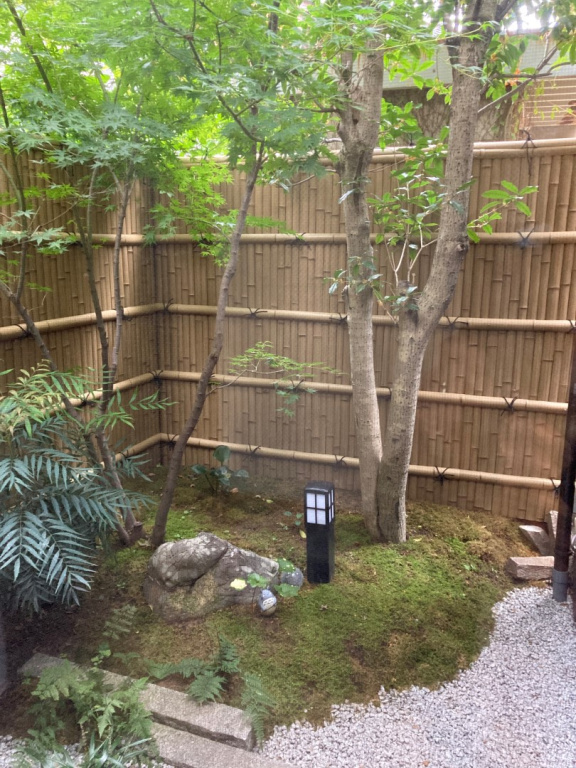 Elle a même son jardin traditionnel, avec rocher, gravier, lanterne, gazon taillé aux ciseaux... Le tout sur 4 mètres-carrés.