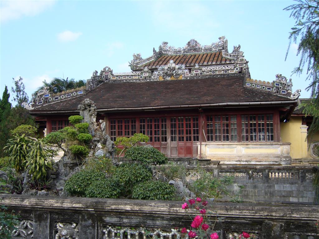 On a pris le train de nuit - très confortable- pour aller à Hué, passé 2 nuits dans un hôtel hors circuit - et hors catégorie ! - visité la citadelle : enfilade de palais, cours et bassins, esplanades où les mandarins se plaçaient sur leur rang suivant leur importance (ça pouvait changer avec l'humeur de l'empereur ! )