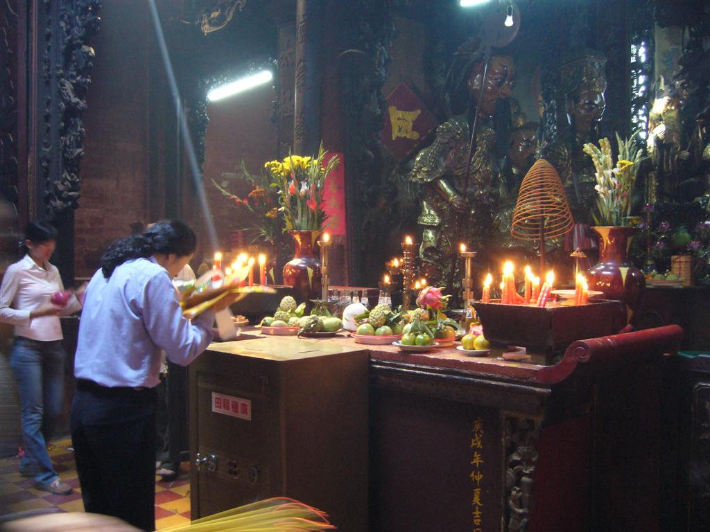 Ce jour-là, il y avait une grande ferveur dans la pagode de l'Empereur de Jade : offrande de fleurs, d'encens, d'huile, petits papiers où l'on a écrit des voeux et que l'on va ensuite brûler.