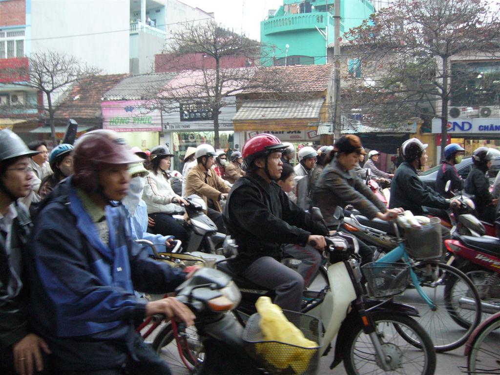 En ville, les gens se déplacent surtout à moto, vélo, peu de voitures et de bus. Traverser est toujours une épreuve, mais il faut se résoudre à couper le flot, sinon on peut attendre longtemps ; un conseil : ne pas paniquer et surtout ne pas courir !