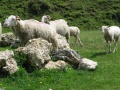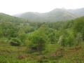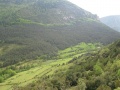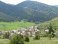 On est en plein pays de forêts. |  Avant le col du Boum ; la pluie a cessé. Enorme troupeau de moutons. |  |  Le village de Comus. Montaillou est à 3 kilomètres, on y fait un tour. |