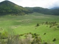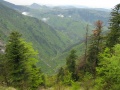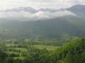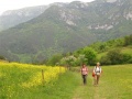Donc, ce sixième jour : d'Aigues-Bonnes - Puilaurens vers Labeau. On descend vers la vallée de l'Aude (franchie à Axat - pique nique au bord de l'eau, puis café), et on remonte la vallée du Rebenty. |  Encore un gite dans une très vieille ferme. Il devait faire froid dans ces régions, vu la taille des cheminées. Remarquez, ils ne manquaient pas de bois. |  Septième jour : de Labeau à Puivert. On reprend un bout de la vallée du Rébenty, en passant à Marsa et son église romane de toute beauté mais passablement décrépite. |  Des belles forêts de hêtres. |