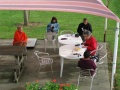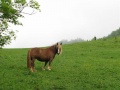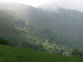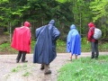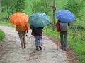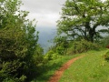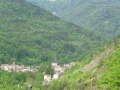 Depuis la château, vue sur le village. |  Onzième et avant-dernière étape, de Montségur à Roquefixade. On est dans le pays d'Olmes. C'est très vert. |  Encore un peu de pluie, pour ne pas perdre l'habitude. Bien que, sur l'ensemble de la randonnée, nous n'avons pas souvent été mouillés. Et même ce temps plutôt frais était bien agréable pour la marche. |  Roquefixade : encore une visite. |
