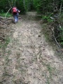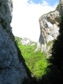 Dixième jour : de Comus à Montségur. La journée commence sous le soleil. |  Descente vers les gorges de la Frau. |  Gorges impressionnantes ; la veille on les dominait. |  Le topoguide avait raison : "un sentier remonte la forêt de façon rectiligne et assez abrupte ; il grimpe péniblement sur un sol terreux". Et comme il avait plu ces derniers jours, le sol terreux s'est transformé en sol boueux. Un peu ardu quand même ! |