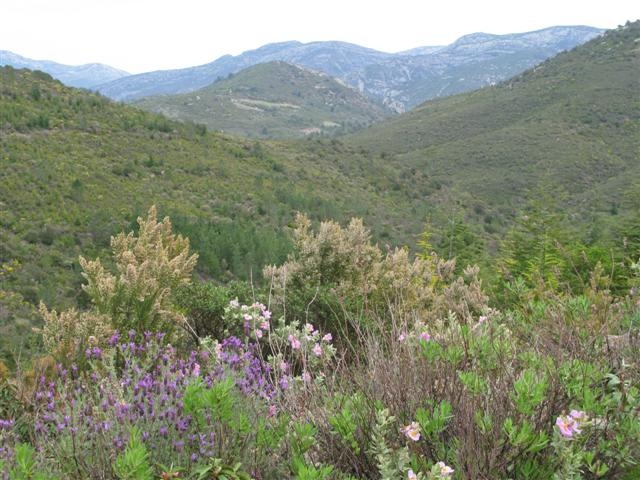 Changement de paysage : on est maintenant dans des chaînons calcaires, la végétation est très belle, tout est en fleurs. Mais nos pieds souffrent des nombreux petits raidillons, bien pentus.