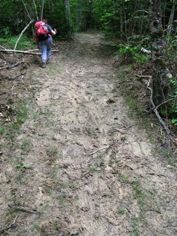 Le topoguide avait raison : "un sentier remonte la forêt de façon rectiligne et assez abrupte ; il grimpe péniblement sur un sol terreux". Et comme il avait plu ces derniers jours, le sol terreux s'est transformé en sol boueux. Un peu ardu quand même !
